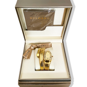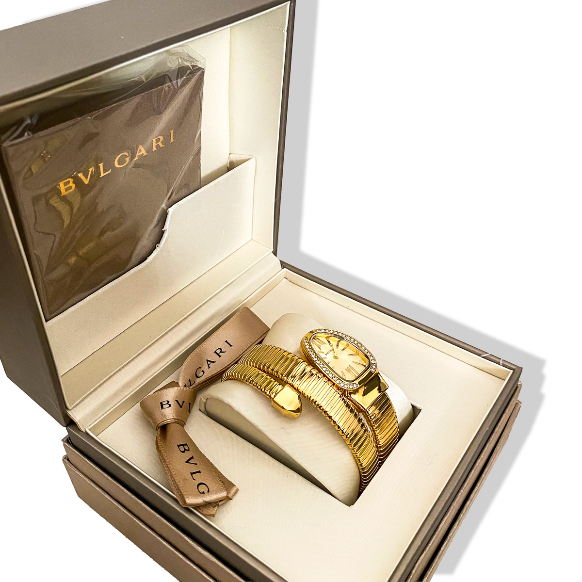 Ce modèle Serpenti est le summum du luxe joaillier. La combinaison du boîtier en forme de tête de serpent, de la finition dorée éclatante et du sertissage de pierres fait de cette pièce un véritable bracelet-bijou, parfait pour un effet "wow" immédiat.
